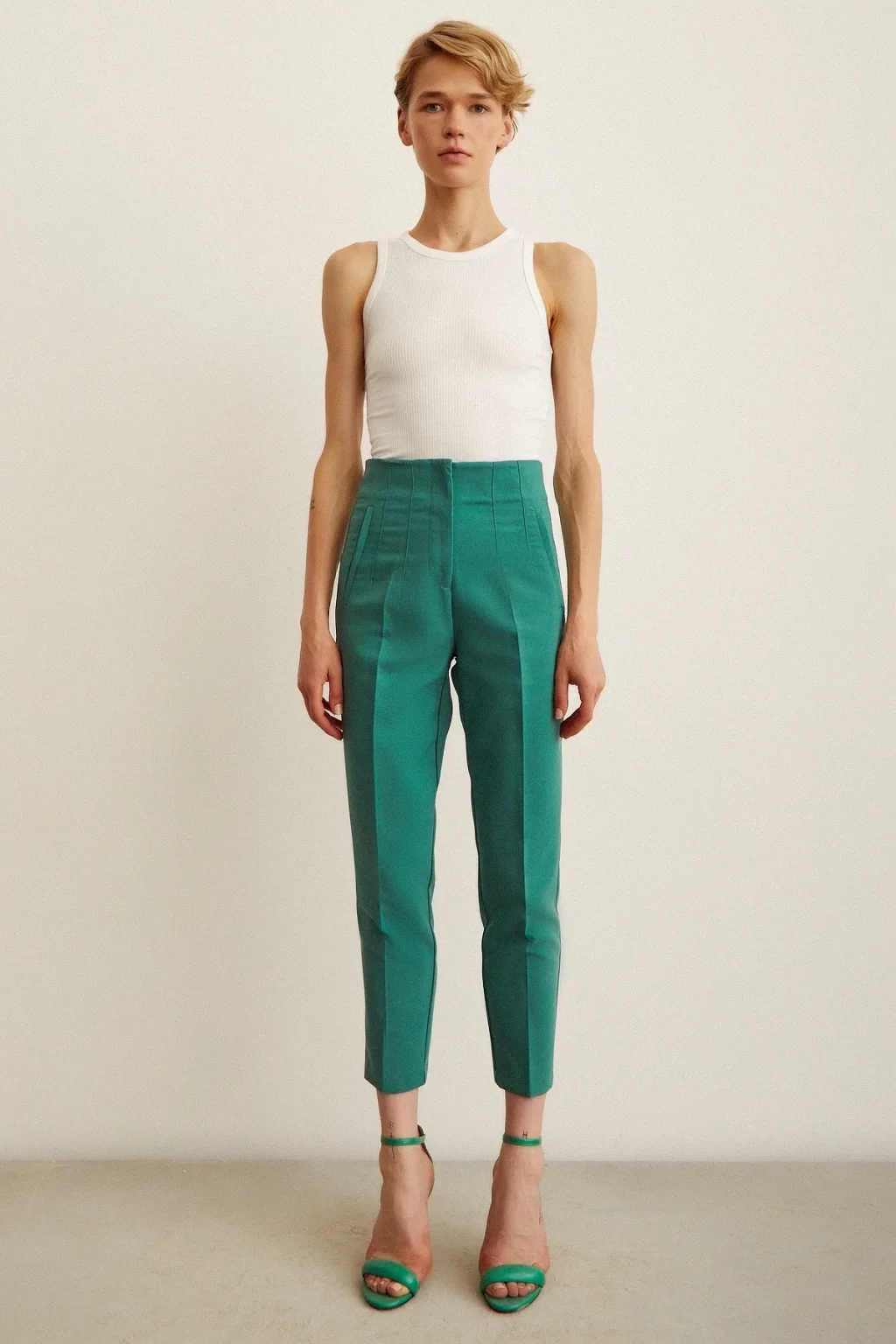 Yüksek Bel Paça Detaylı Kemerli Pantolon Siyah