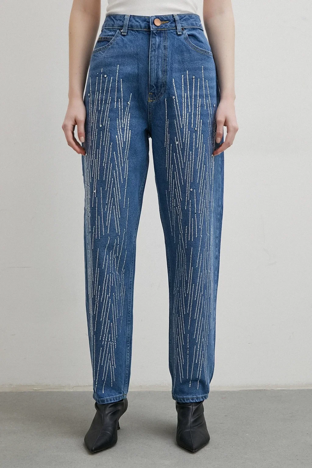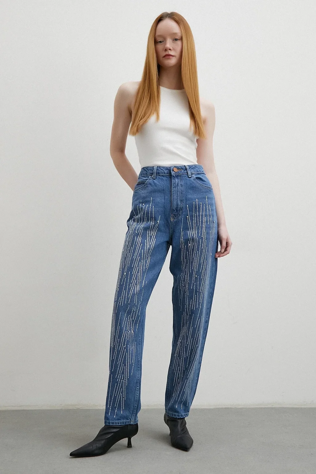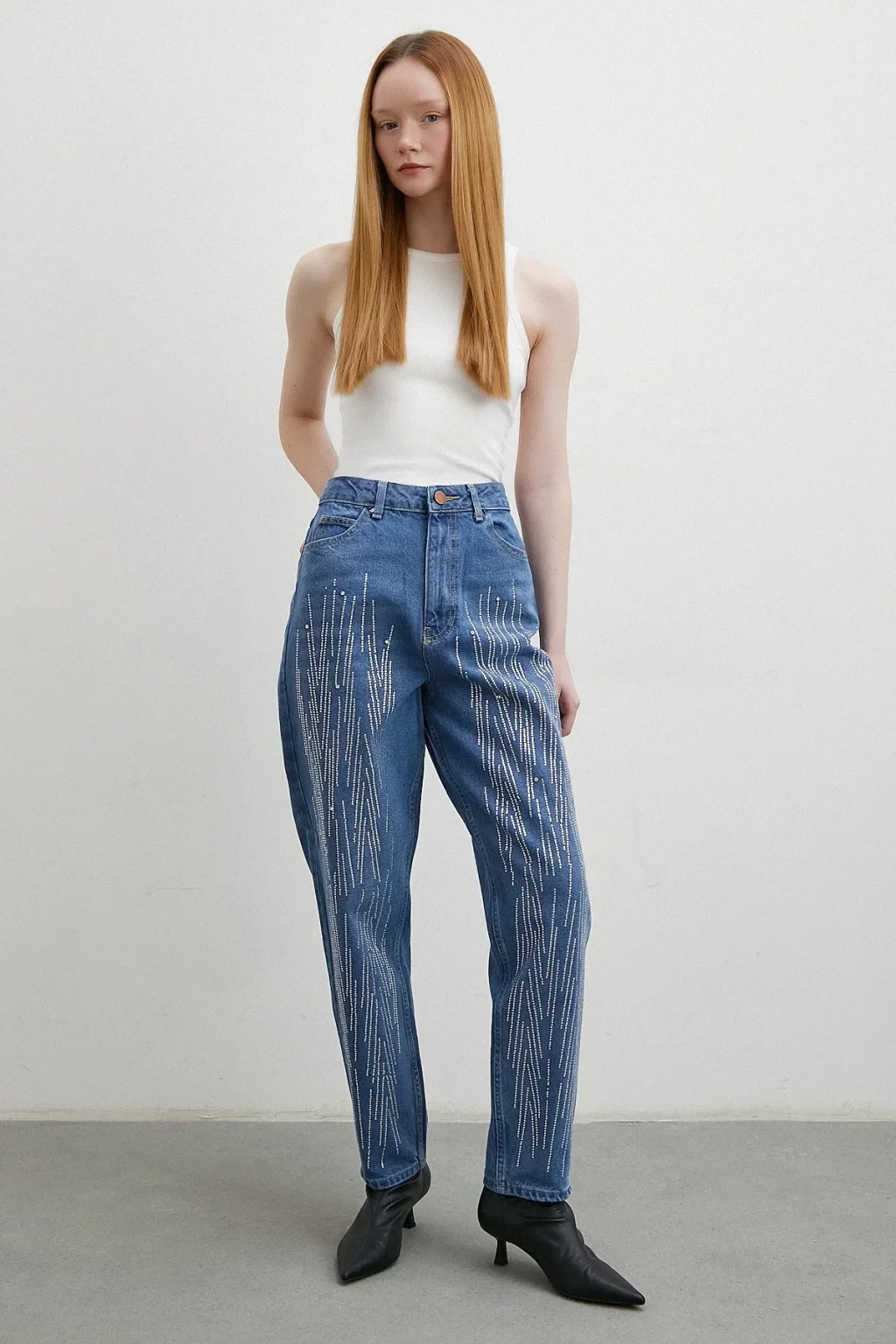 Beli Lastikli Dökümlü Geniş Paça Pantolon Taş