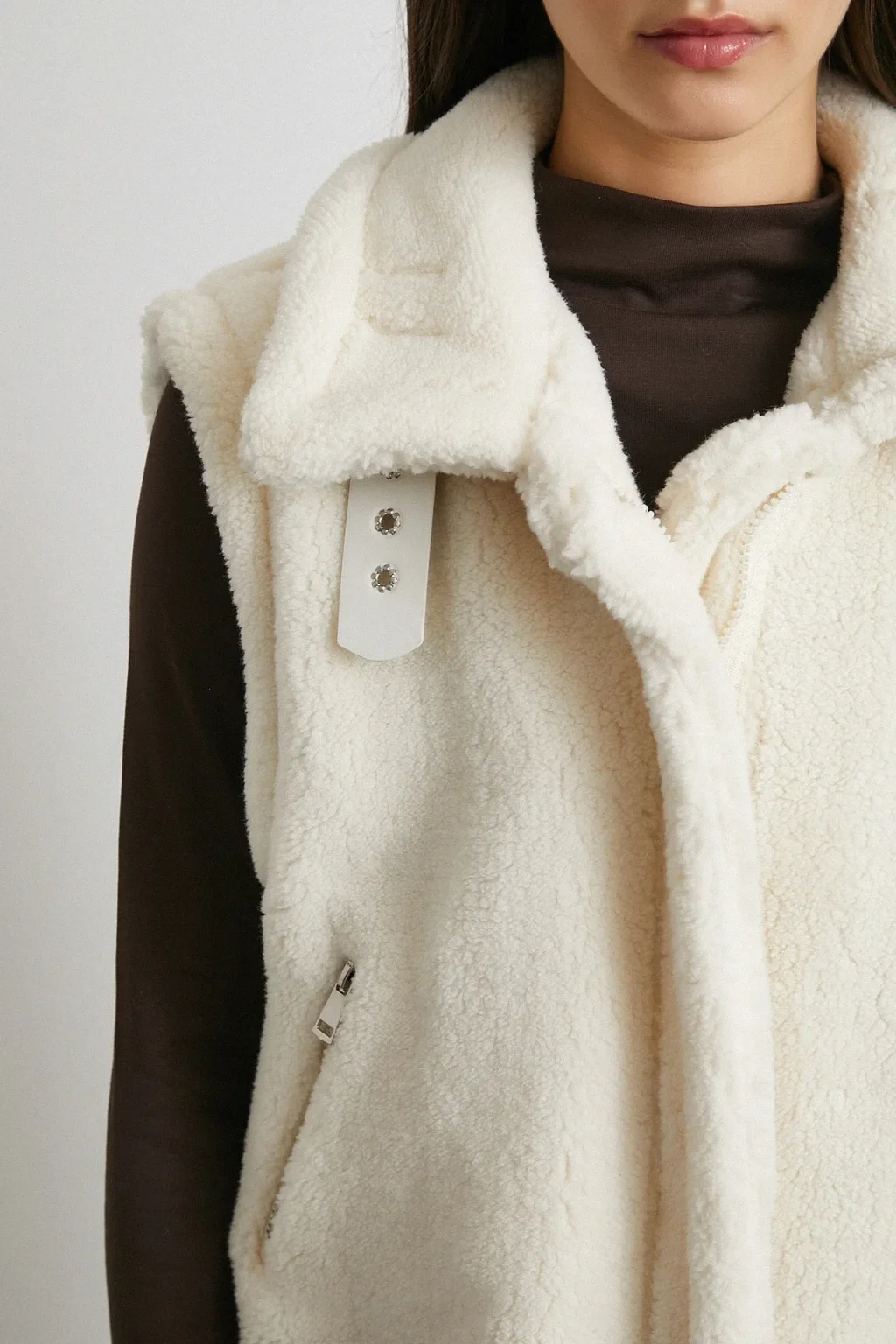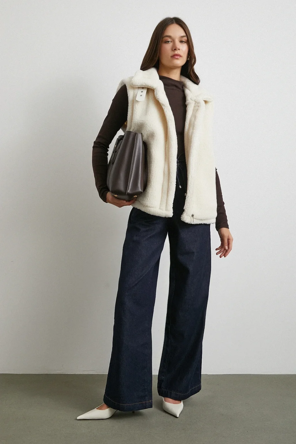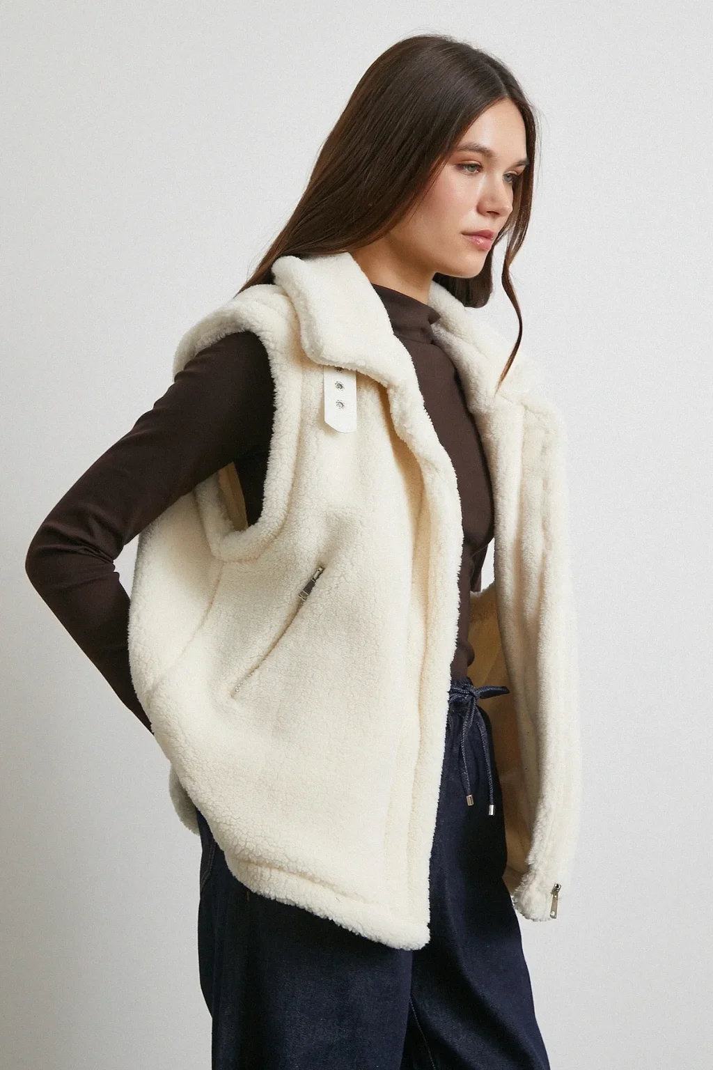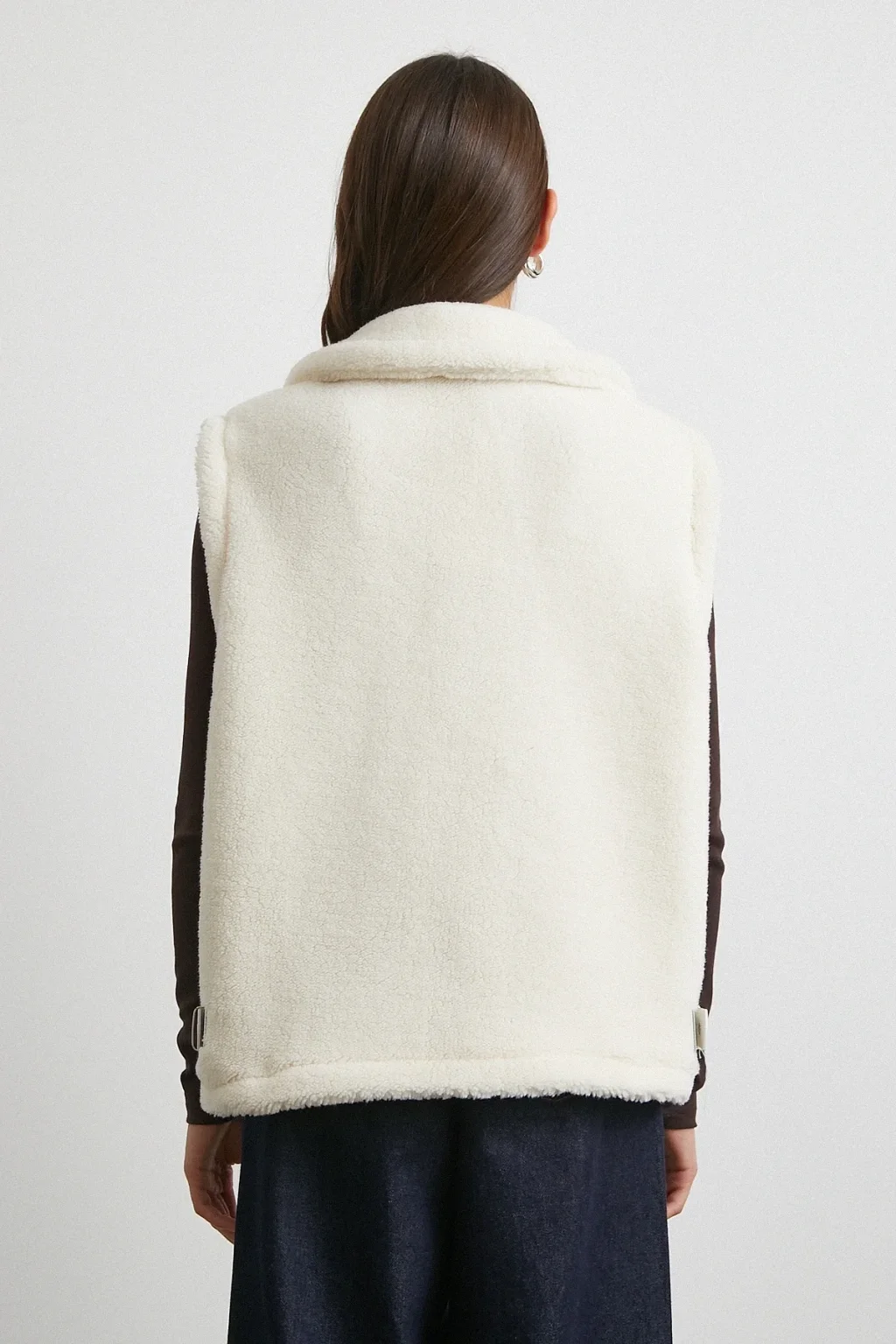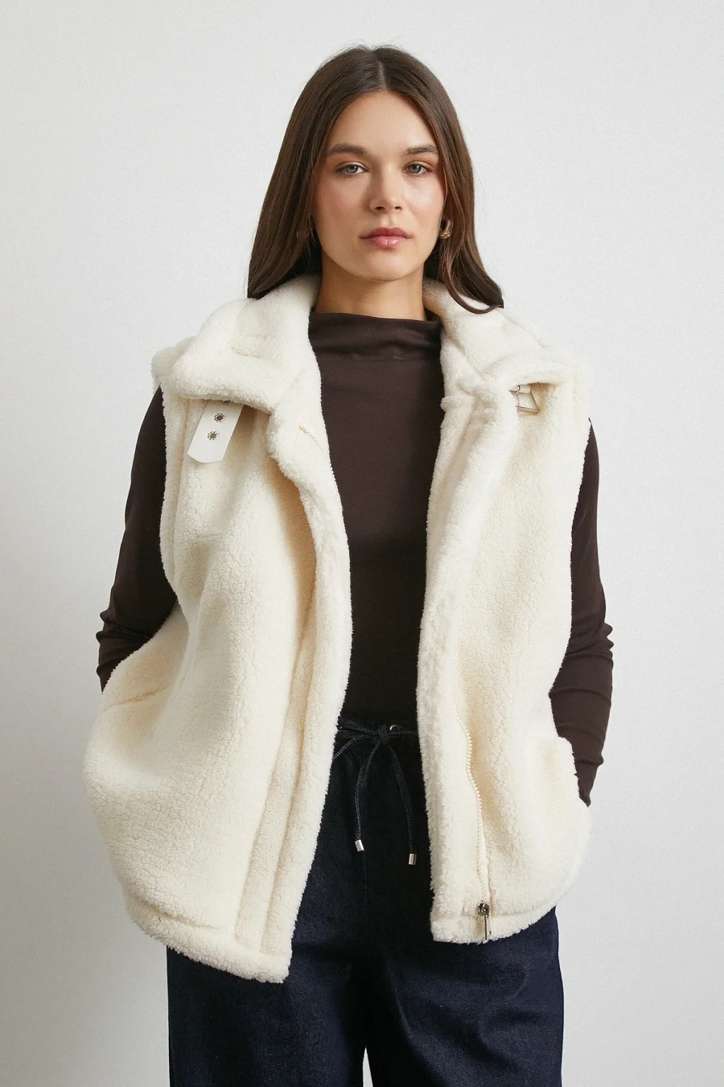 Yaka Detaylı Yumoş Yelek Ekru
