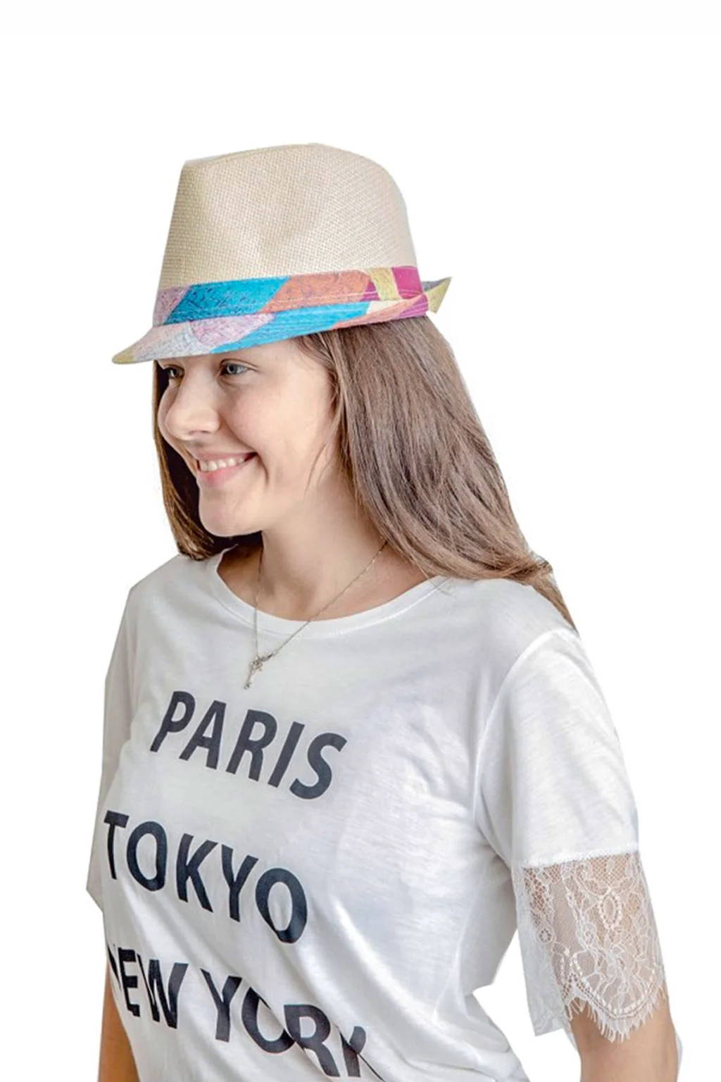Yazlık Desenli Hasır Kadın Fötr Şapka 6261