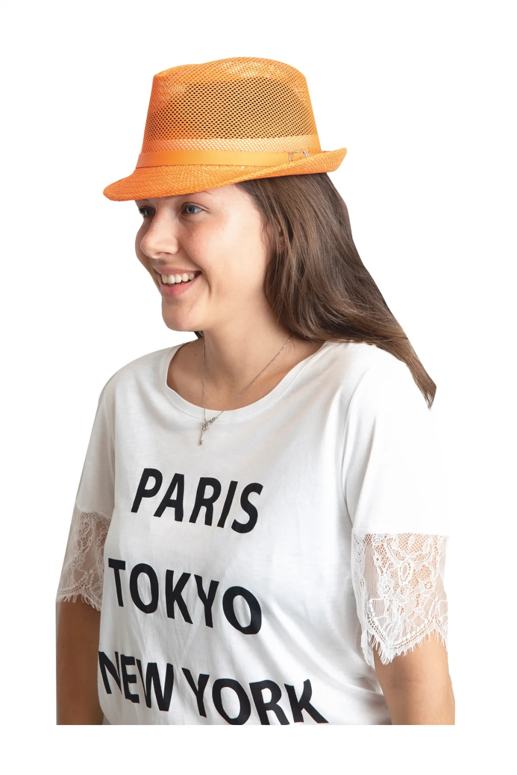 Yazlık Fileli Kemerli Fötr Kadın Şapka 6223