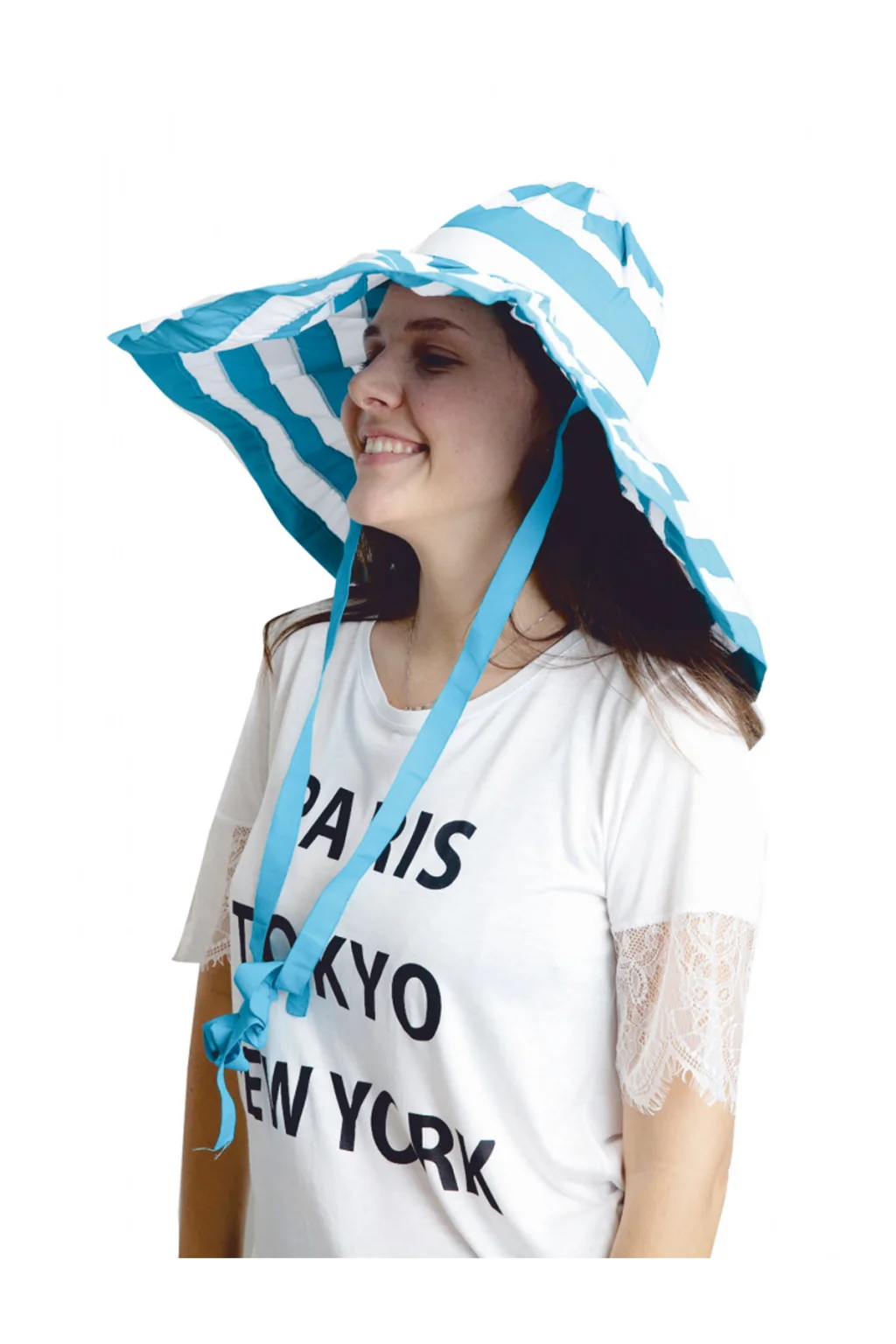 Bay Şapkacı - Yazlık Kadın Geniş Kenarlı Şeritli Şapka; ; ; ;